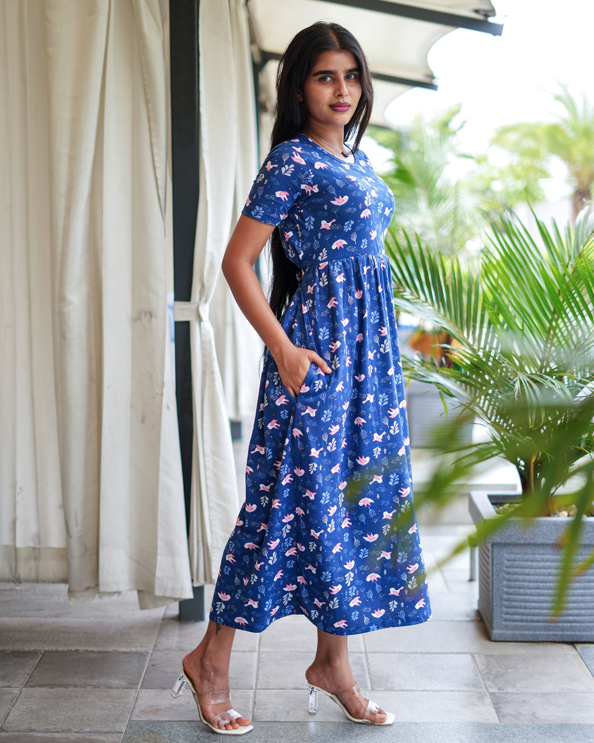Blue Butterfly & Navy Bird Printed Maxi Dress Combo for Women