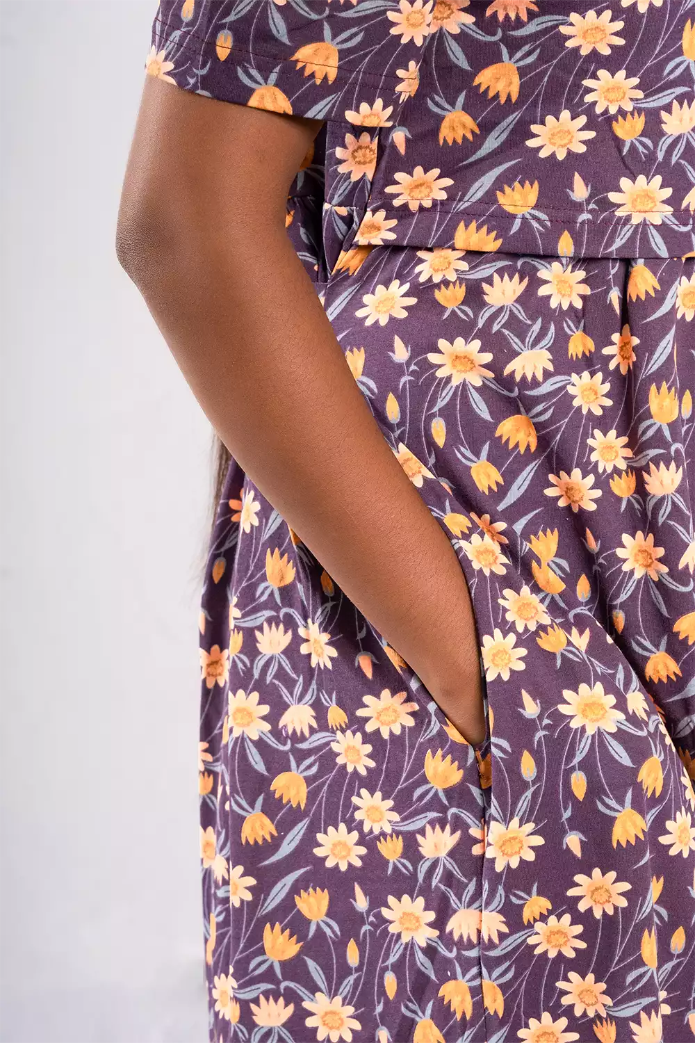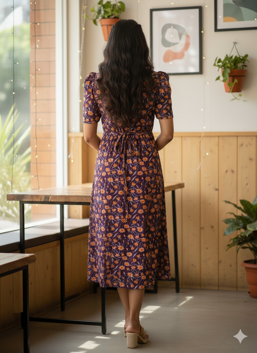Capri Feeding Wear with Puff Sleeve Wine Flower