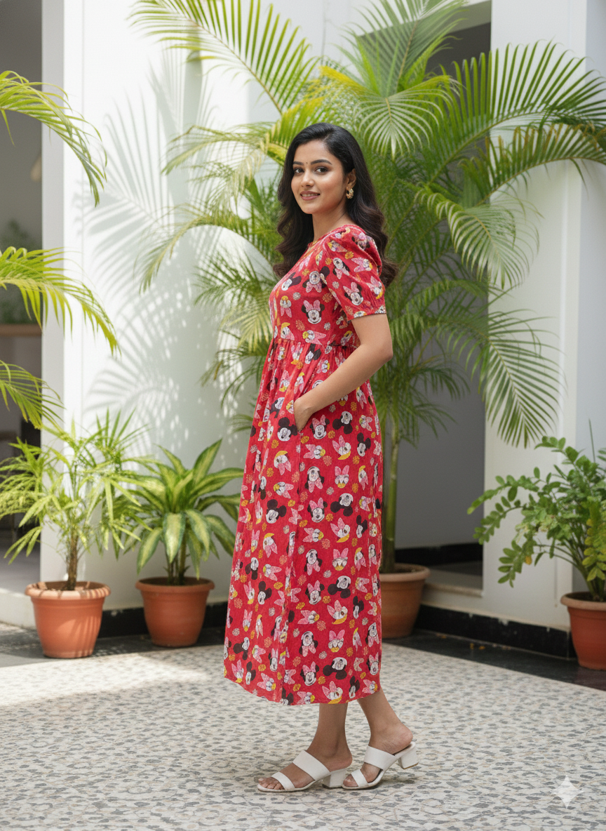 Casual Lounge Wear Non Feeding with puff Red Mickey