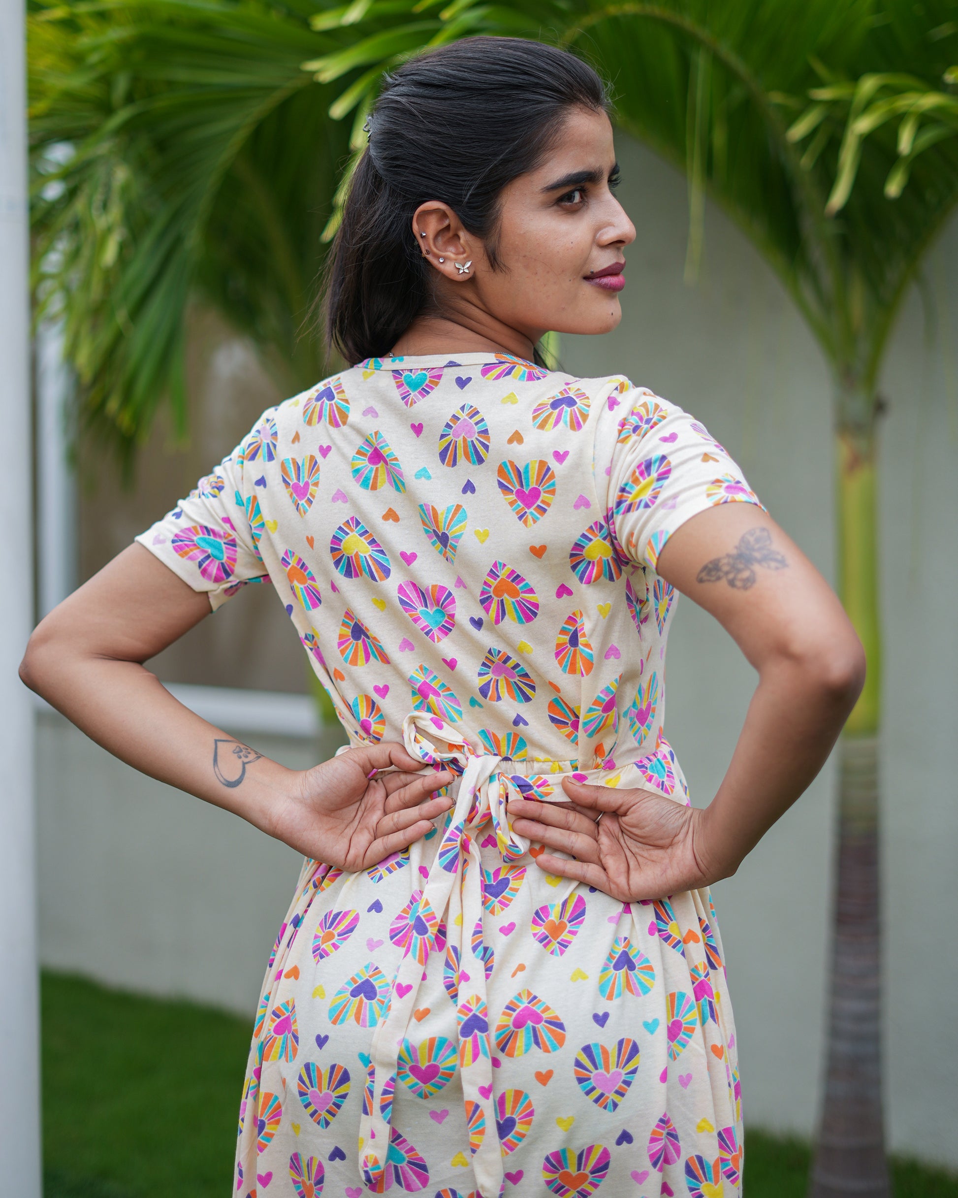 Women’s Printed White Multi Heart & Red Eye Maxi Dress Combo