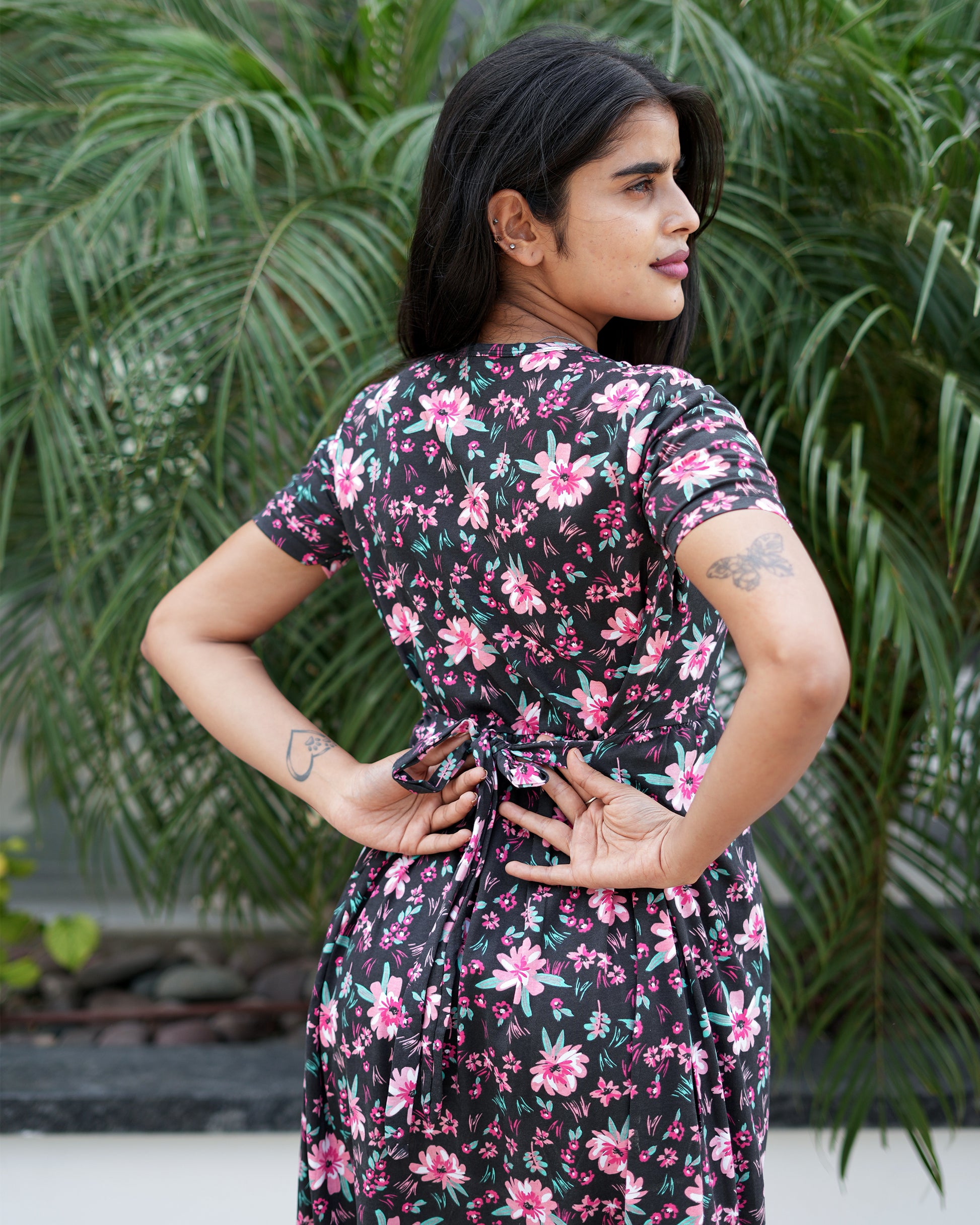 Women’s Printed White Yellow Floral &Black pink Floral Maxi Dress Combo