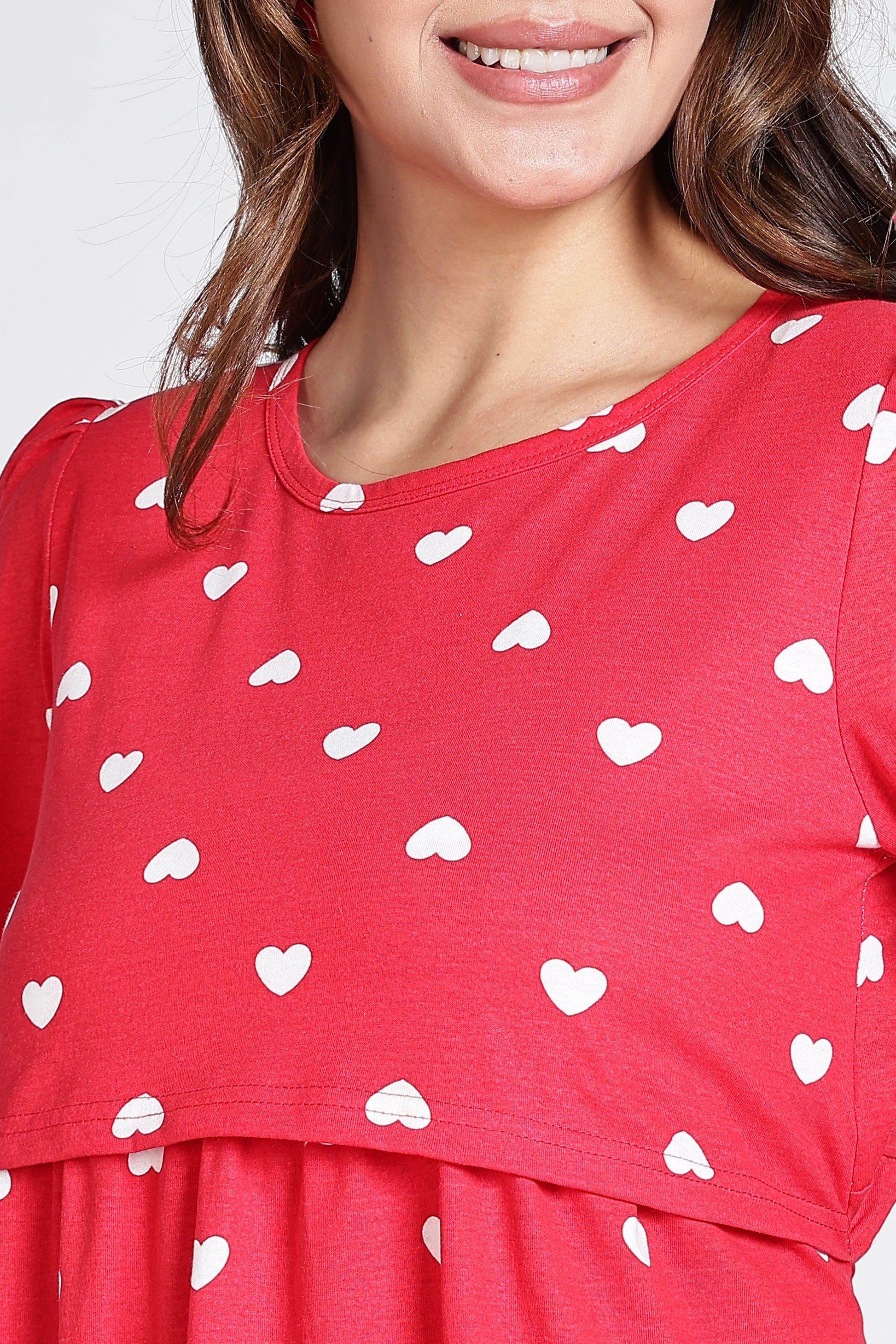 Soft and Breathable Maternity Feeding Gown Designed for daily comfort. Zipless easy feeding access, Puff Sleeves an 52 inch graceful length For a relaxed and stylish look. Perfect for pregnancy and post pregnancy Wear.